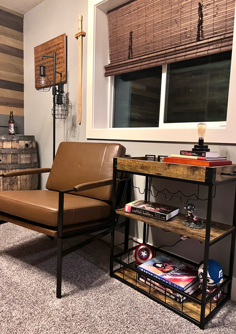 This home basement bar is a stark contrast to the bright and light main living spaces of the home. The dark speakeasy aesthetic makes it truly feel like you're stepping back in time with an elegant Gatsby twist and plenty of personal custom touches.